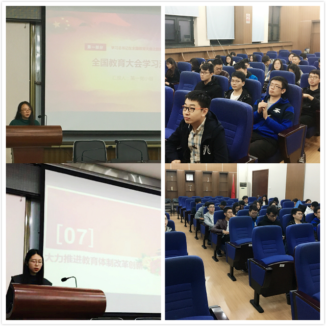 10月31日,本科2015级党支部于为民楼620召开全国教育大会精神学习主题党日。会上,同志们集体学习了全国教育大会精神,并结合教育体制改革、教育公平性、学术不端事件、事业单位编制改革等教育热点问题及自身经历分别发言,进行深入交流。同志们一致认为,要深刻领会总书记关于加强学校思想政治建设要求的重大意义,深刻领会我们的教育必须把培养社会主义建设者和接班人作为根本任务的重要要求,要有服务大局的意识,积极参与到我校“双一流”建设中,在学习生活中发挥好模范带头作用。