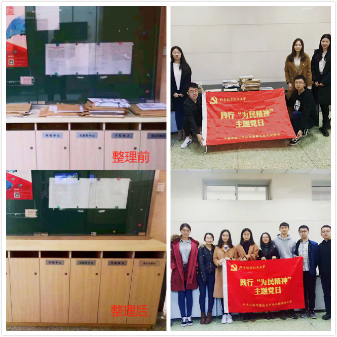 10月26日,硕士2018级第一党支部于在当天开展“信息无滞,服务有情”主题党日活动:整理为民楼一层宣传平台与各基层单位信箱中的滞留信件,将其发到对应的老师或学生手中。通过上下午两队的协作,党支部成员分发完了全部滞留信件,一层的宣传平台也恢复了往日的干净整洁。在活动过程中,党支部的行为受到了老师们的表扬和同学们的鼓励。支部成员也这一件小事中体会了“全心全意为人民服务”这一宗旨,学到了“为民精神”从我做起。同日,博士2017级党支部和硕士2017级第一党支部还开展了打扫实验室卫生、借还书籍等活动。