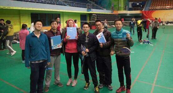 下午2点45分,比赛选手换装进场完毕,开始比赛前的热身运动。3点整比赛正式开始,首先开始的是男女混双比赛。同学们个个英姿飒爽、身姿矫健。马文停和冯晓两位同学一路过关斩将,成功摘得混双冠军的桂冠。紧接着开始的是男双比赛。男双比赛的角逐格外的激烈。杨率帅、吕晨琦同学凭着他们高超的技艺和默契的配合,成功坐上第一名的宝座。
