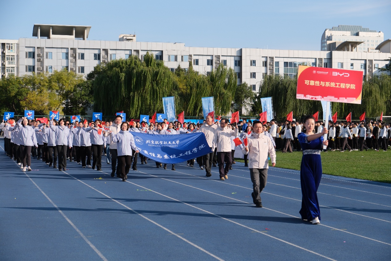 随着清晨的第一缕阳光洒满学院路校区,运动会开幕式在雄壮的国歌声中拉开序幕。可靠性与系统工程学院百余名师生以整齐的步伐、铿锵的口号步入会场,高举“求实创新,可靠为民”的标语,彰显了新时代可靠人的使命与担当。这一刻,我们不仅是运动的参与者,更是梦想的追逐者!
